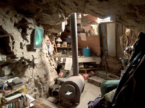 In a collaboration with Yukon resident Caveman Bill, Tom Wolseley has produced a slow 360° panning shot of the inside of Bill’s cave, which he has lived in for the past 15 years. As the camera pans around the cave Bill narrates the stories of all the objects we see, from a cool-box he found floating down the Yukon river, to a stove he inherited from 2by4 Bob. The stories and objects both confirm and deny romantic fictions and everyday realities of Bill’s life in the far north.