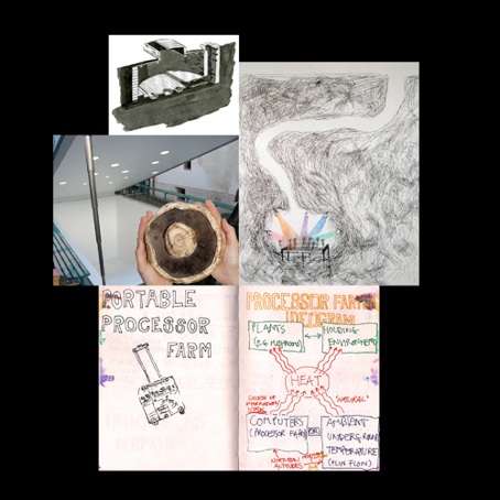 'holding environment' which foregrounds support and potentiality of a group/crop/batch or set. In this case, hardware from a surplus PC will be stripped of its casings, and re-modelled into a controlled growing environment. The heat produced by the functioning of the computers will be captured and channeled into this space, in which mushrooms will be kept at the optimum temperatures for growth, fruiting and spore production.